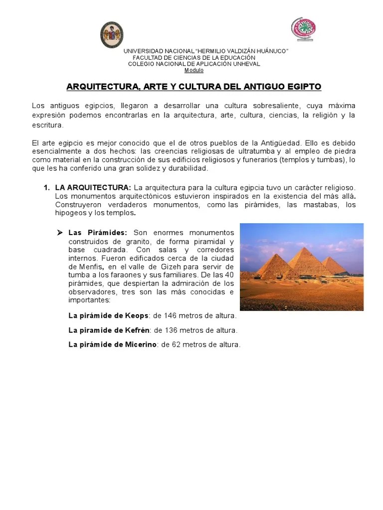 11/01/2018 · el arte egipcio se encuentra clasificado en varias etapas la cual representa la cultura egipcia, por el cual han predominado la pintura, música y el arte, el cual se ha desarrollado en diferentes aspectos con diferentes influencias exteriores , la cual ha evolucionado durante mucho tiempo, a …. . La arquitectura del antiguo egipto utilizaba ladrillos cocidos al horno, areniscas finas, granito y piedra caliza, a causa de la ausencia de árboles que impidieron el uso de maderas como materiales …